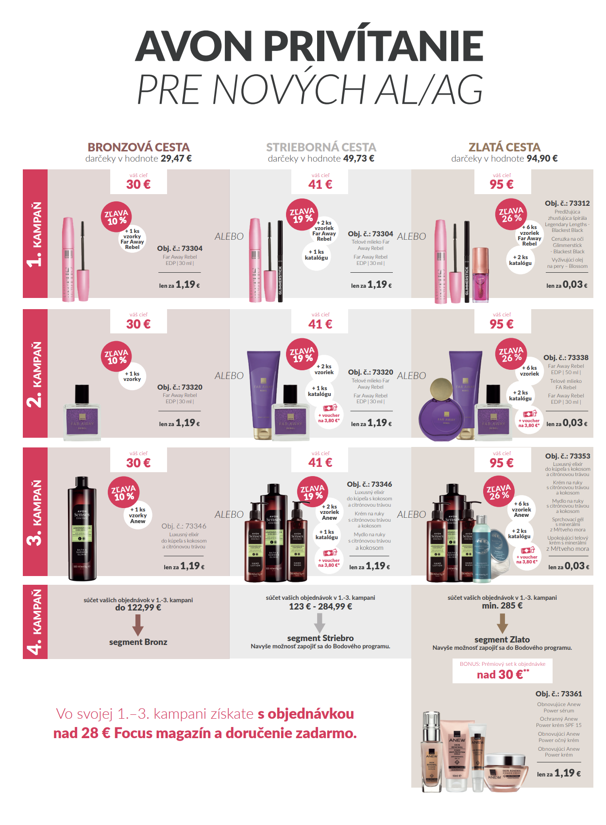 Radi vás prevedieme celým procesom registrácie, tiež vám poskytneme podporu pri spracovaní vašich objednávok. . Po úspešnej registrácii vám zašleme registračný balíček ktorý obsahuje, aktuálny katalóg, časopis Focus a vzorky. Sme skúsený tím manažérov so sídlom v Martine, no pôsobíme v rámci celého Slovenska. Nami registrované Avon leady získavajú podporu a pomoc 24/7. Spoločne s nami môžeš získať a využívať zľavy, darčeky a dopravu zdarma ktoré ti Avon ponúka.